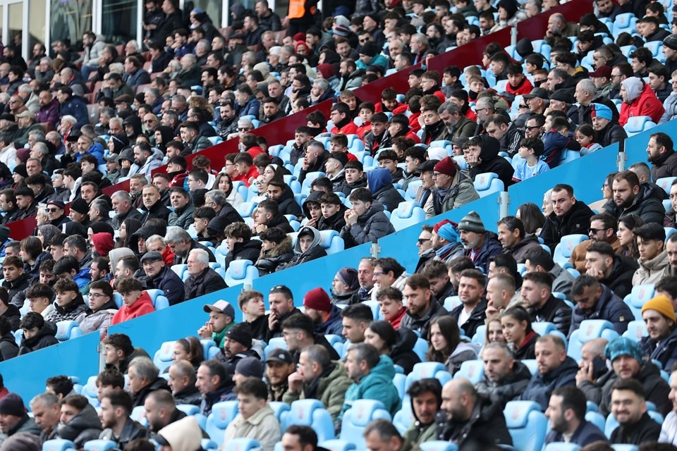 Trabzonsporlu futbolseverler, stadyuma girişin ücretsiz olduğu tarihi maçta genç futbolcuları yalnız bırakmadı ve stadyumu önemli şekilde doldurdu.