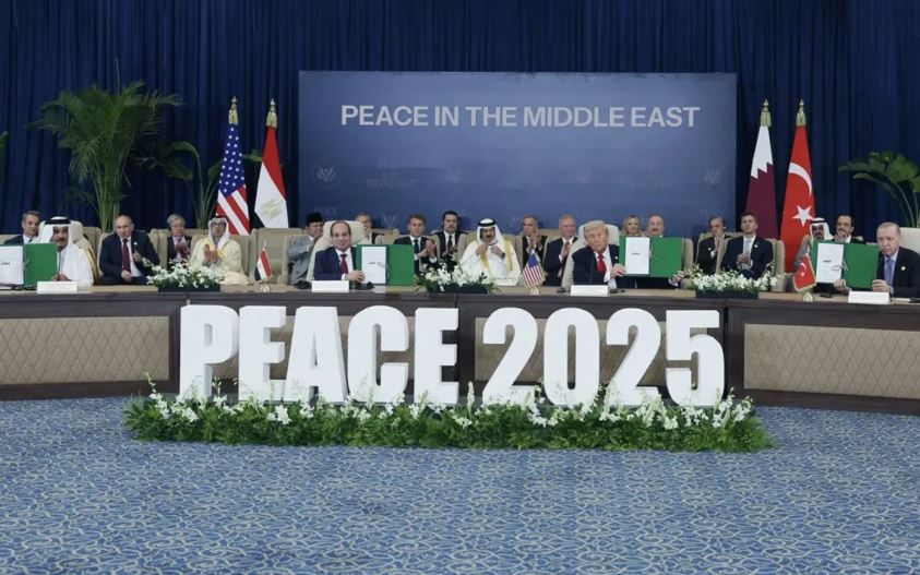Cumhurbaşkanı Recep Tayyip Erdoğan, ABD Başkanı Donald Trump, Mısır Cumhurbaşkanı Abdulfettah es-Sisi ve Katar Emiri Şeyh Temim bin Hamed Al Sani, Şarm el-Şeyh Barış Zirvesi Niyet Beyanı'nı imzaladı.