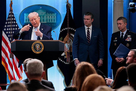 İran donanma gemilerinin tamamının yok edildiğini öne süren Trump, "Onların donanma gemilerinin hepsi, 159'u da şu an denizin dibinde!" diyerek bölgedeki deniz üstünlüğünün tamamen ABD kontrolünde olduğunu savundu.