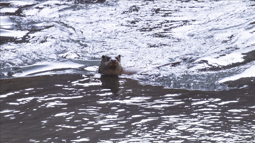 Bir süre başını su yüzeyine çıkararak çevreyi izleyen su samuru, daha sonra kaya oyuğuna girerek gözden kayboldu.
