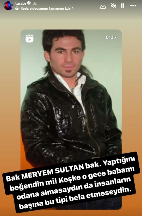 2,3 milyon takipçisinin bulunduğu Instagram hesabından bir gençlik fotoğrafını yayınlayan Turabi, "Kim derdi bu tip milyon dolarlar kazanacak ve dünyanın bir numaralı "Reality Tv Show" yıldızı olacak. Hayallerinizden vazgeçmeyin gençler. Eğer bu tip başarılı olduysa, sen de olursun! Tipe bak. Tipini diktiğim. Evladım olsa sevmem bu tipi. Ana, baba kusura bakmayın 14 sene evinizde bu tipe katlandığınız için. Genç yaşta evden kaçarken beni neden durdurmadığınızı şimdi anlıyorum. Evimde böyle tip olsa de get nalet diye diye kovardım evden" dedi. Turabi daha sonra annesine seslenerek "Bak Meryem Sultan bak. Yaptığını beğendin mi? Keşke o gece babamı odana almasaydın da insanların başına bu tipi bela etmeseydin" ifadelerini kullandı.