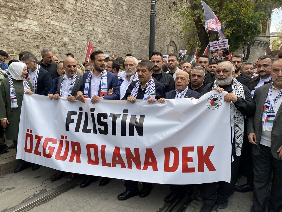 "Ben Gazze'deki çocuklar için yürüyorum sen ne yapıyorsun?", "Yürü kardeşim ayağına Kudüs gücü gelsin.", "Bir sabah gelecek kardan aydınlık.", "Zulmün olduğu yerde tarafsız kalınmaz." yazılı döviz ve pankartlar taşıyan grup, Eminönü Meydanı'na doğru yürüyüşe geçti.