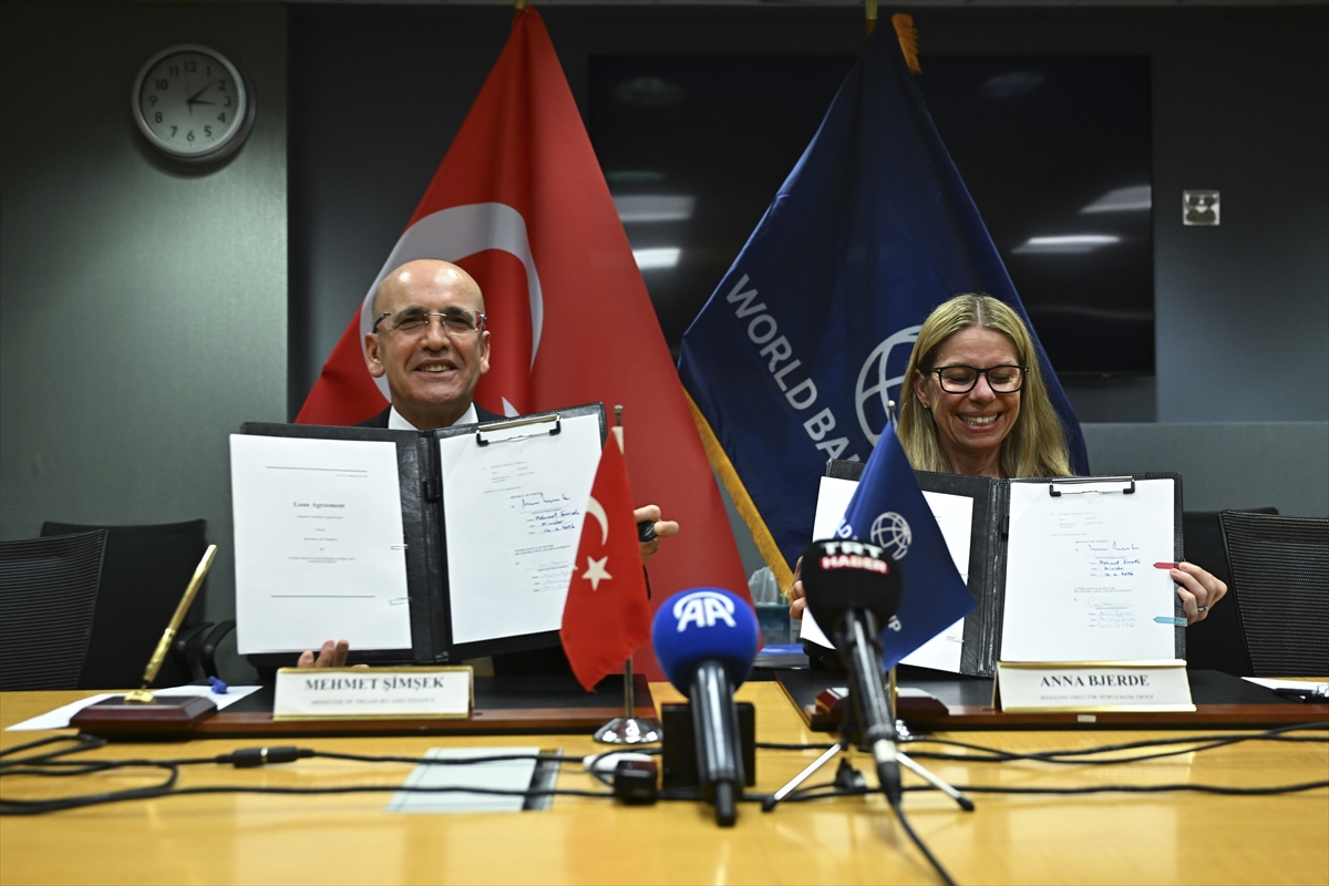 G20 ve Uluslararası Para Fonu (IMF)-Dünya Bankası Bahar Toplantıları'na katılmak üzere Washington'da bulunan Bakan Şimşek, İstanbul Kuzey Demir Yolu Geçişi Projesi'nin finansman anlaşmasının Dünya Bankası'nın genel merkezinde düzenlenen imza törenine katıldı.