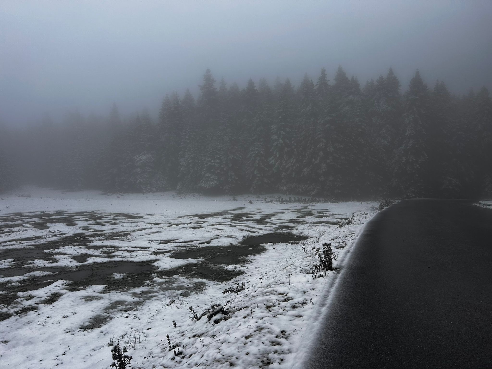 Dağın zirvesi ve kayak merkezlerinin bulunduğu noktalarda belirli aralıklarla kar yağışı ve sis görüldü. Kar yağışının ardından yüksek kesimlerdeki çam ağaçları beyaz örtüyle kaplandı.