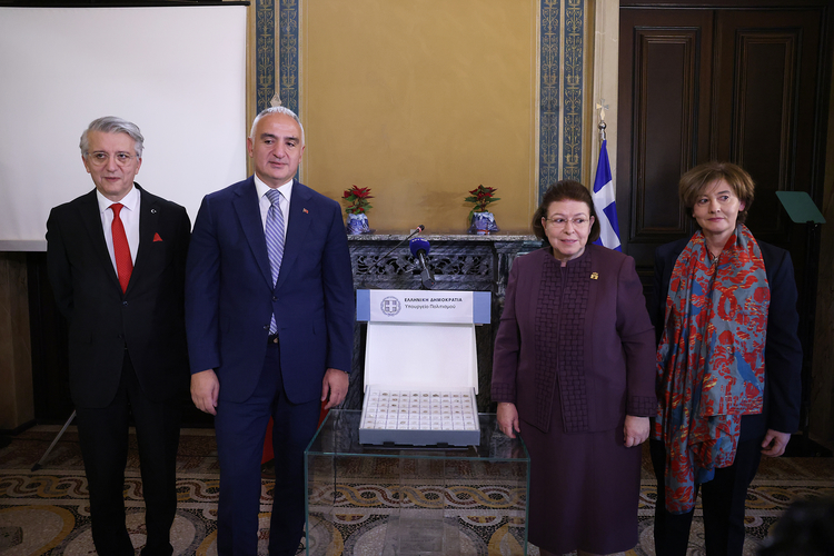 "Ülkelerimizin tarih ve medeniyet zenginliğini korunmak adına ortaya koyduğumuz bu güçlü işbirliğiyle çok önemli bir eşiği geçtiğimizi düşünüyorum. Zira, nice medeniyetin köken ve geçiş coğrafyası olan ülkelerimiz, insanlığın binlerce yıllık hafızasını topraklarında muhafaza ediyor ve bizler varisi olduğumuz bu mirası korumak için kültür varlığı kaçakçılığı gibi çok ciddi bir tehditle sürekli mücadele ediyoruz. Tehdit ortak olunca onun üstesinden gelmek için tarafların da ortak bir duruş sergilemesi, bundan ödün vermeden güçlü bir işbirliği halinde olması gerekiyor. Türkiye ve Yunanistan olarak bu farkındalığa sahip olduğumuzu; gerekli adımları atacak irade ve kararlılığı taşıdığımızı bugün burada bir kez daha herkese göstermiş oluyoruz. Bu titiz ve suçla mücadeleye odaklı örnek yaklaşımı bütün pazar ve geçiş ülkelerinden görmek en büyük temennimizdir."