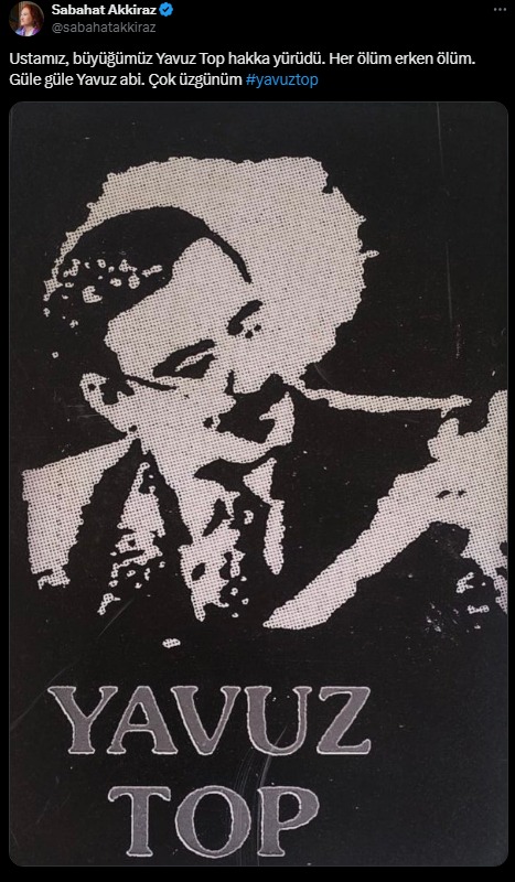 Akkiraz, "Ustamız, büyüğümüz Yavuz Top hakka yürüdü. Her ölüm erken ölüm. Güle güle Yavuz abi. Çok üzgünüm" ifadeleriyle Top'un vefat ettiğini duyurdu.