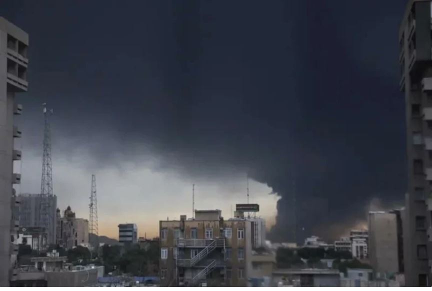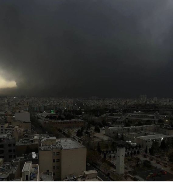 Sabahın ilk saatlerinde petrol depolarındaki yangın nedeniyle Tahran semalarının siyah dumanlarla kaplandığı görüldü.