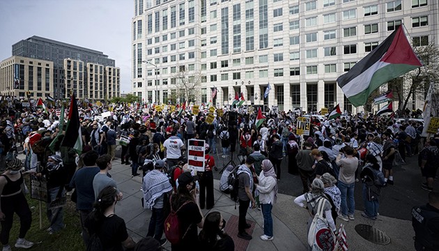 Yapılan konuşmalardan sonra dev bir Filistin bayrağı taşıyan göstericiler, başkentteki ICE genel merkezi önüne yürüdü.