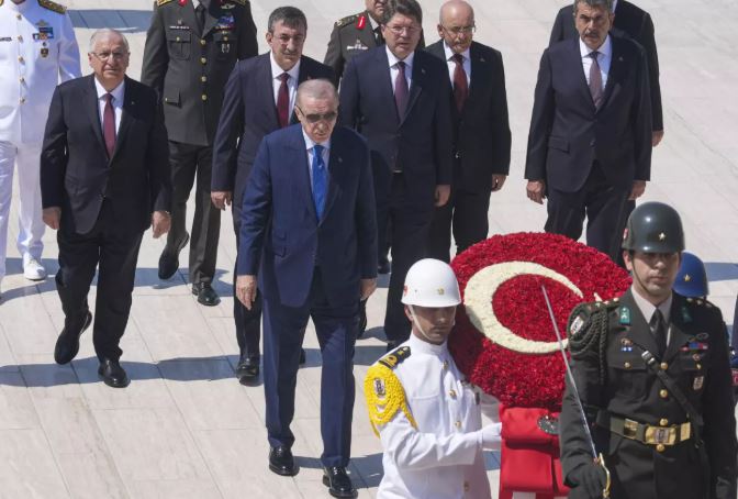 Erdoğan'ın Aslanlı Yol'un başındaki yerini almasının ardından başlayan törene, Cumhurbaşkanı Yardımcısı Cevdet Yılmaz, Adalet Bakanı Yılmaz Tunç, İçişleri Bakanı Ali Yerlikaya, Hazine ve Maliye Bakanı Mehmet Şimşek, Milli Eğitim Bakanı Yusuf Tekin, Milli Savunma Bakanı Yaşar Güler ve Dışişleri Bakanı Hakan Fidan, komutanlar ve diğer devlet erkanı katıldı.