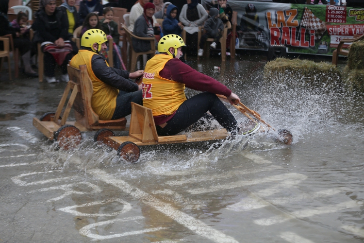 Olası kazalara karşı güvenlik önlemleri alınan yarış pistinin tehlikeli bölümlerine saman balyaları yerleştirildi. Yağışlı havada zor anlar yaşayan bazı yarışmacıların, tahta arabalarını iterek bitiş çizgisine ulaşmaya çalıştıkları görüldü.