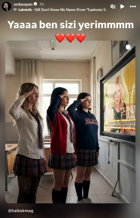 Sosyal medyayı aktif kullanan isimlerden biri olan Seda Sayan, takipçileri tarafından hazırlanan ve yapay zeka teknolojisiyle oluşturulan bir kareyi Instagram hikayesinde paylaştı. Görselde, tüm dünyada izlenme rekorları kıran Euphoria dizisinin başrol oyuncuları Cassie (Sydney Sweeney), Maddy (Alexa Demie) ve Kat (Barbie Ferreira), bir lise sınıfında yer alıyordu. Ancak görseldeki asıl detay, karakterlerin pürdikkat baktığı akıllı tahtada Seda Sayan’ın bir televizyon programındaki görüntüsünün yer almasıydı.