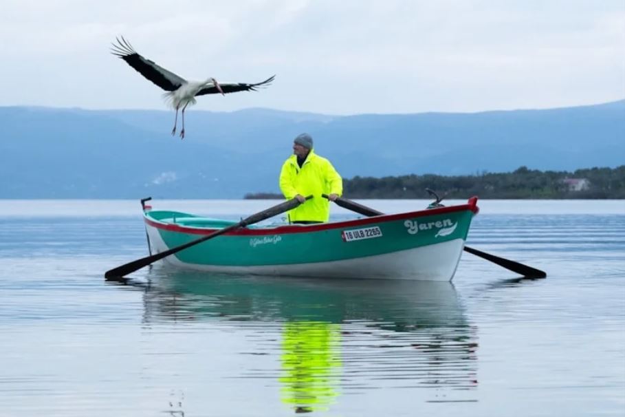 Her yıl göçten döndüğünde ilk olarak balıkçı Adem Yılmaz’ın kayığına konan Yaren Leylek, 15. yılda da göçten geldi.