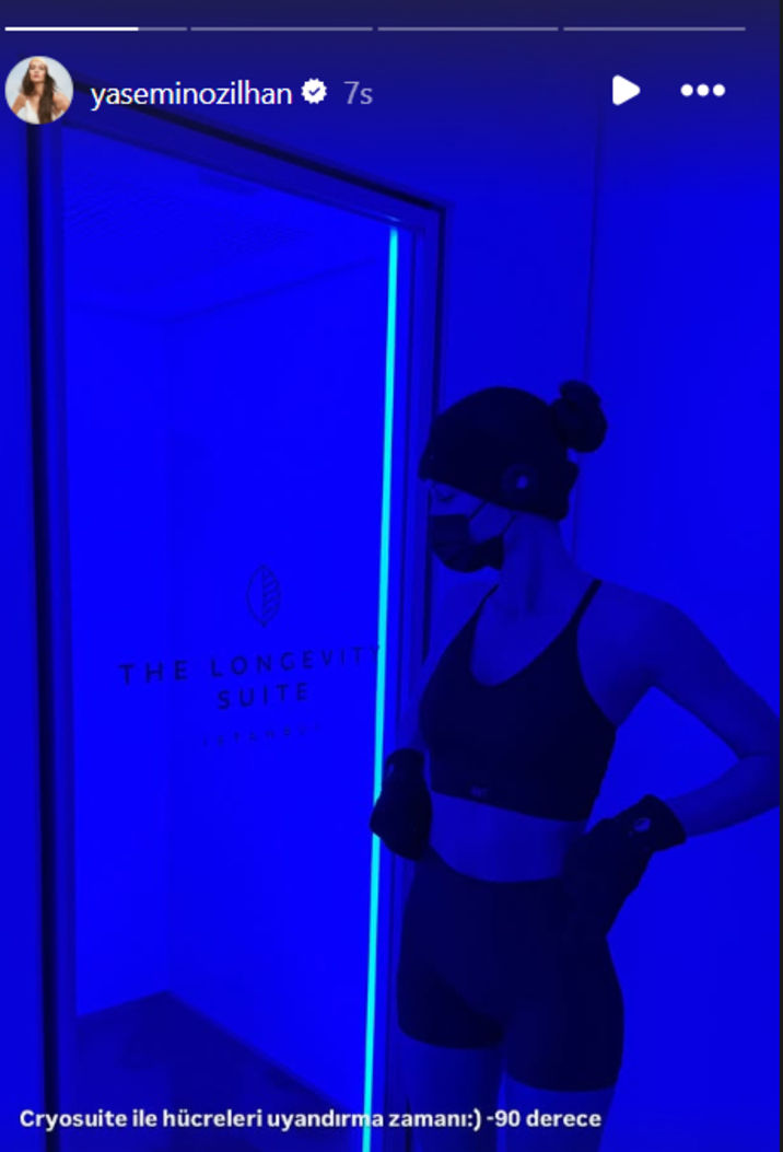 Özilhan, -90 derecelik kriyoterapi (soğuk terapi) uygulamasına girdiği anları takipçileriyle paylaştı.