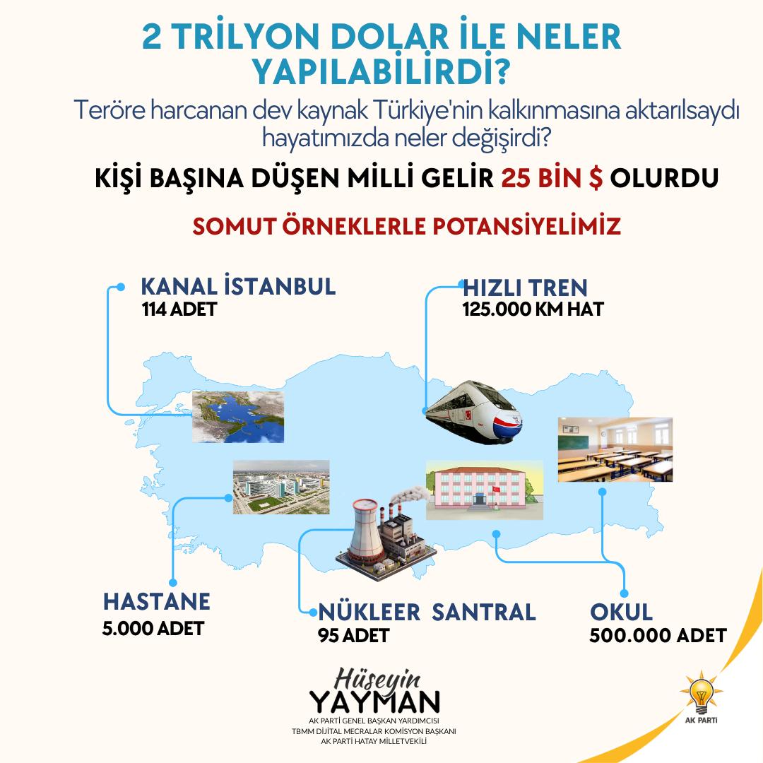 Türkiye'nin uzun yıllar boyunca terörle mücadeleye büyük kaynak ayırdığını vurgulayan Yayman, bu süreçte harcanan yaklaşık 2 trilyon dolarlık kaynağın ülke kalkınmasına yönlendirilememesinin büyük bir kayıp olduğuna dikkat çekti.
