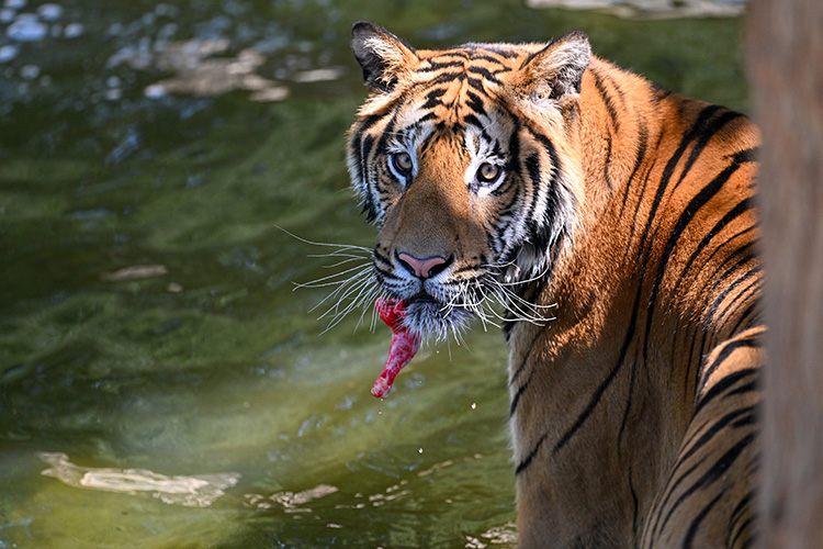 Buzlu kokteyllerle serinleyen kaplanlar, hava sıcaklığının yüksek olması nedeniyle havuzlarında vakit geçirdi.