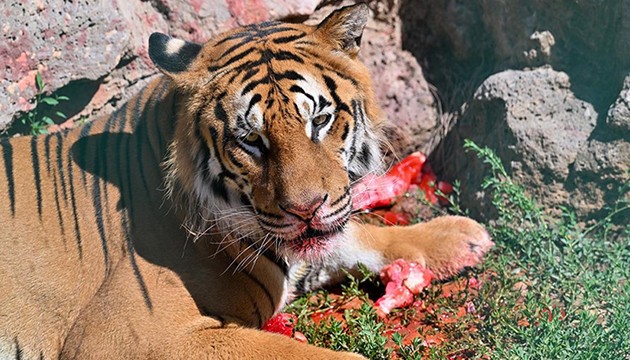 Kaplanlara özenle baktıklarını ifade eden Özsöyler, "Hepsinin yazlıkları ve kışlıkları mevcut. Bugün de onların Uluslararası Kaplan Günü'nü kutluyoruz. Onlar için özel menü hazırladık. Renkli et kokteylleri yaptık. Bu etkinlik ziyaretçilerin de çok hoşuna gidiyor." diye konuştu.