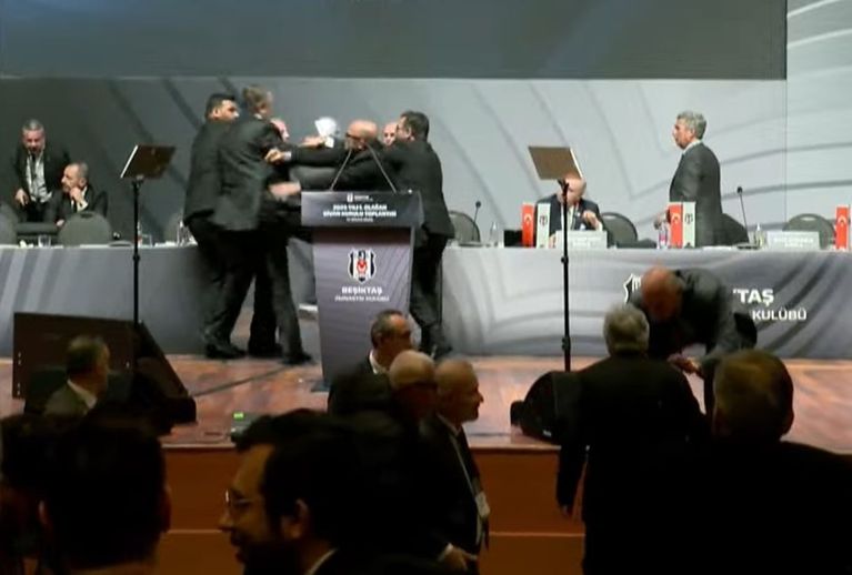 Beşiktaş'ın bugün gerçekleştirdiği 2025 yılı 1'inci Olağan Divan Kurulu Toplantısı'nda, Lütfü Kırdar Kongre ve Sergi Sarayı'nda eski başkan Hasan Arat'ın konuşması sırasında Divan Kurulu Başkanı Tevfik Yamantürk'ün müdahalesiyle başlayan tartışmada başkan Arat'a fiziksel saldırı oldu.